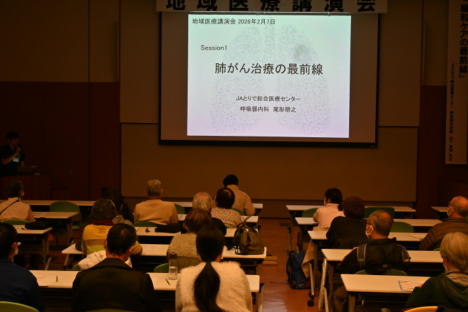 | 地域医療講演会を開催 演題 肺がん治療と緩和ケアの最前線 〜人生100年時代を自分らしく生きるために〜 講師 : 呼吸器内科医 尾形朋之先生・山下高明先生 (お二人ともJAとりで総合医療センター勤務) 2026年2月7日(土) 於 JAとりで総合医療センター講堂 |